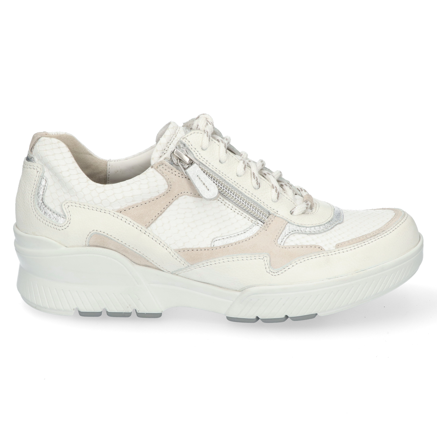 Durea 6252 Sneaker Wit H. Stap in stijl en comfort met deze trendy sneakers van Durea. De leren inzetten en sierlijke stikwerk geven een eigentijdse uitstraling. Handige details zoals de ritssluiting en ronde veters maken ze gemakkelijk aan en uit te trekken. De tweekleurige zool met Durea GO technologie biedt de hele dag door comfort en ondersteuning. Pasvorm: Dit model is een H-leest, daardoor geschikt voor de normale voet.