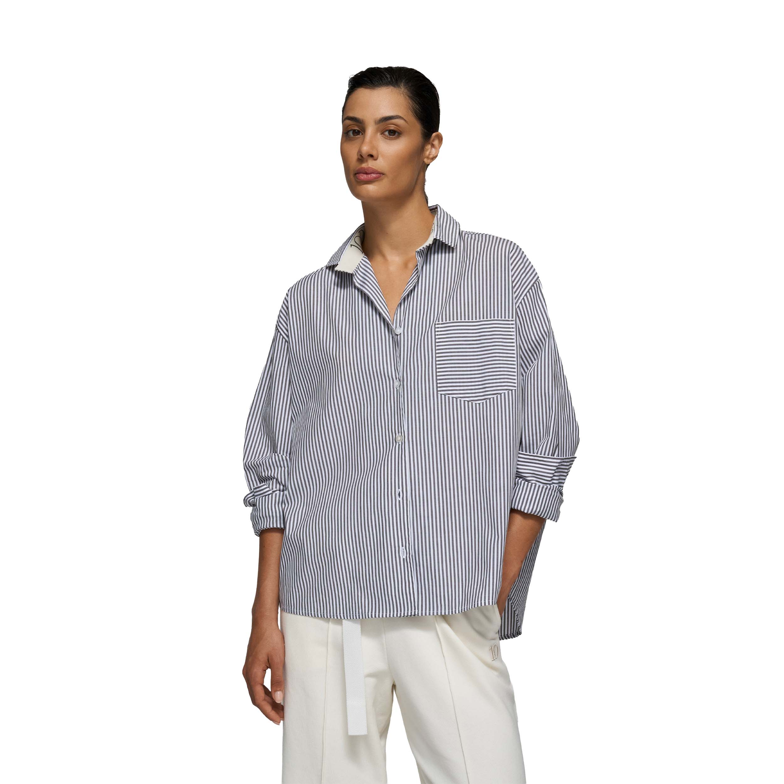 De 10DAYS 20-404-6201 Shirt Stripes White/Charcoal is ideaal voor allerlei momenten in je dag. Begin je je ochtend met een belangrijke afspraak? Draag ‘m onder een nette blazer. Liever wat losser in je vrije tijd? Gewoon open met een topje eronder – klaar. Voor professionele toepassingen is het de perfecte middenweg tussen formeel en ontspannen. En voor persoonlijke verzorging? Nou ja, het voelt zó fijn op de huid dat je ‘m bijna als comfort wear zou kunnen inzetten.