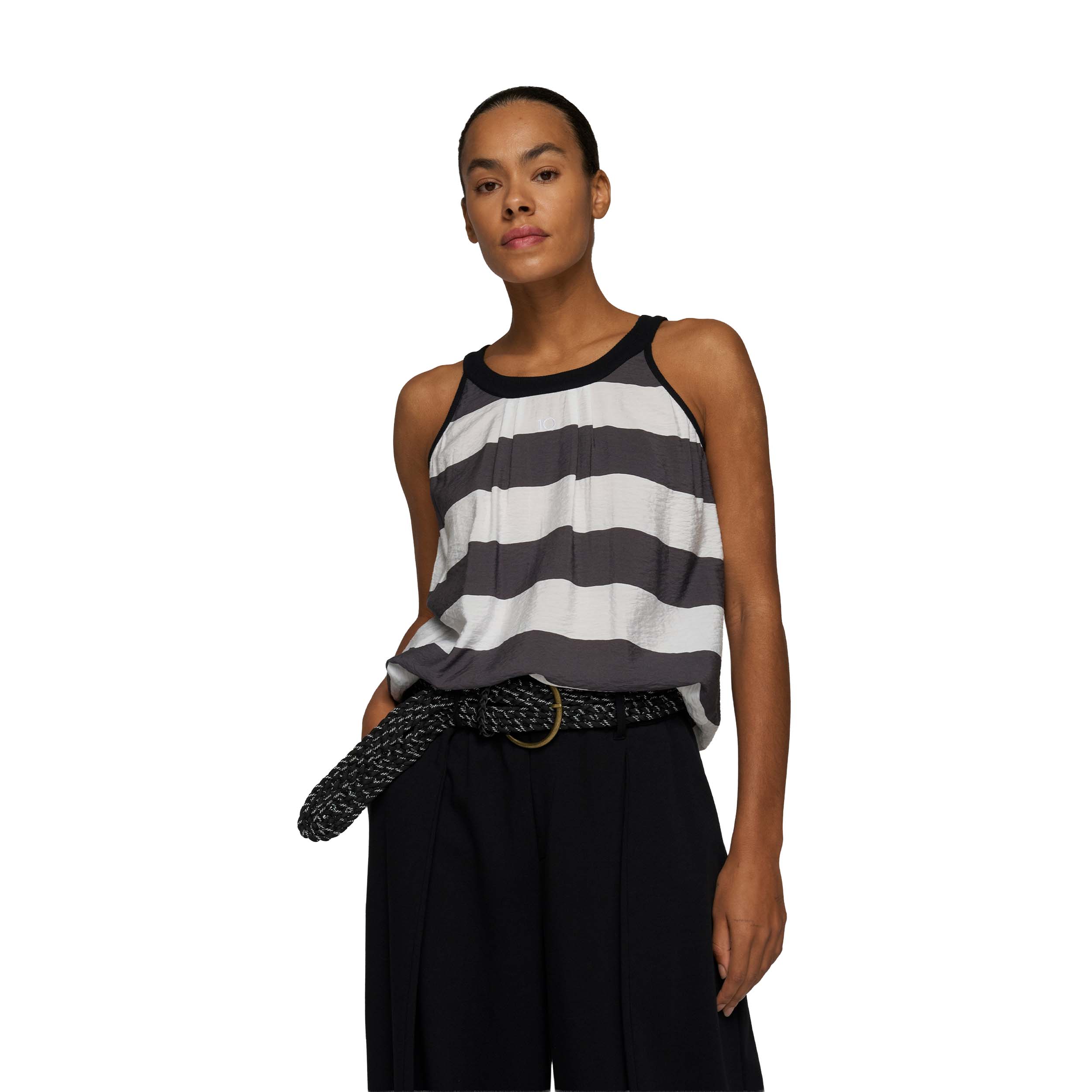 Hoe gebruik ik 10DAYS 20-460-6202 Top Halter Stripes White/Brownish Grey het beste?