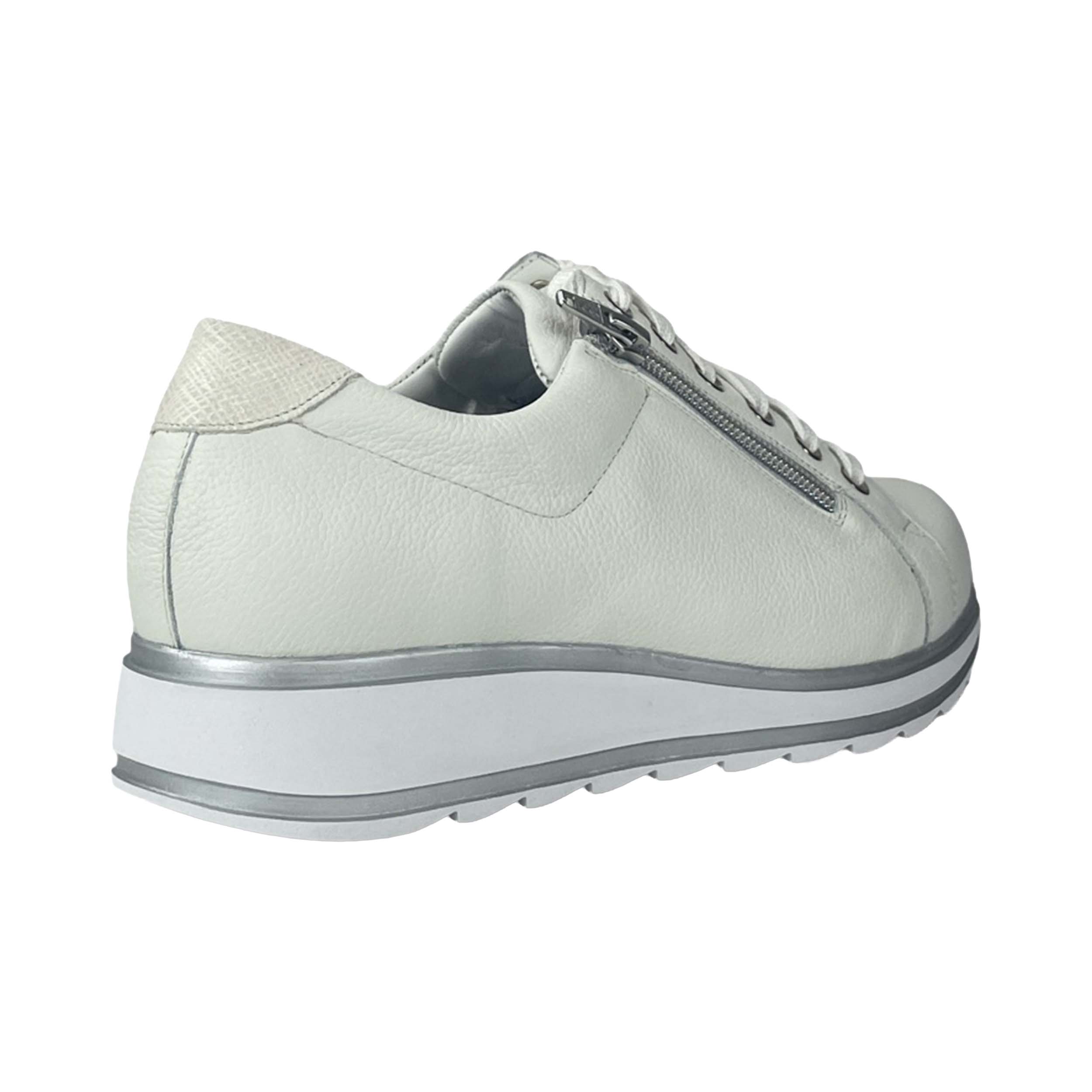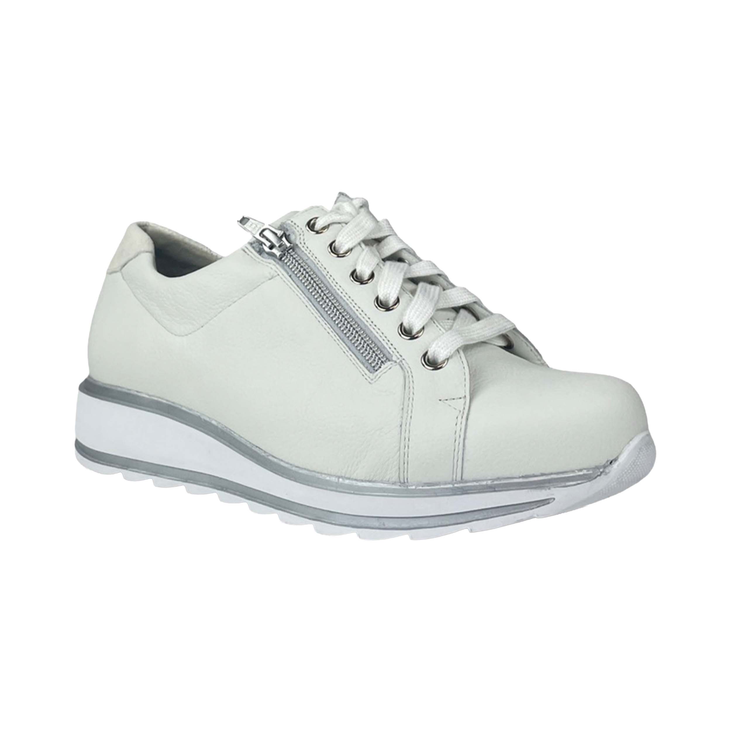De Durea 6286 Sneaker Wit K+ is gemaakt van leer en heeft een leren voering. De schoen heeft een vetersluiting met aan beide zijden een rits, hierdoor trek je de schoen gemakkelijk aan en uit en pas je de schoen naar wens aan. Dit model heeft extra ruimte voor de vollere voet met een uitneembaar voetbed en verwijderbaar tussenzooltje. De lichte, flexibele zool ondersteunt de voetafwikkeling en zorgt voor demping. Pasvorm: dit model heeft een K+ leest, hierdoor geschikt voor de extra brede voet.