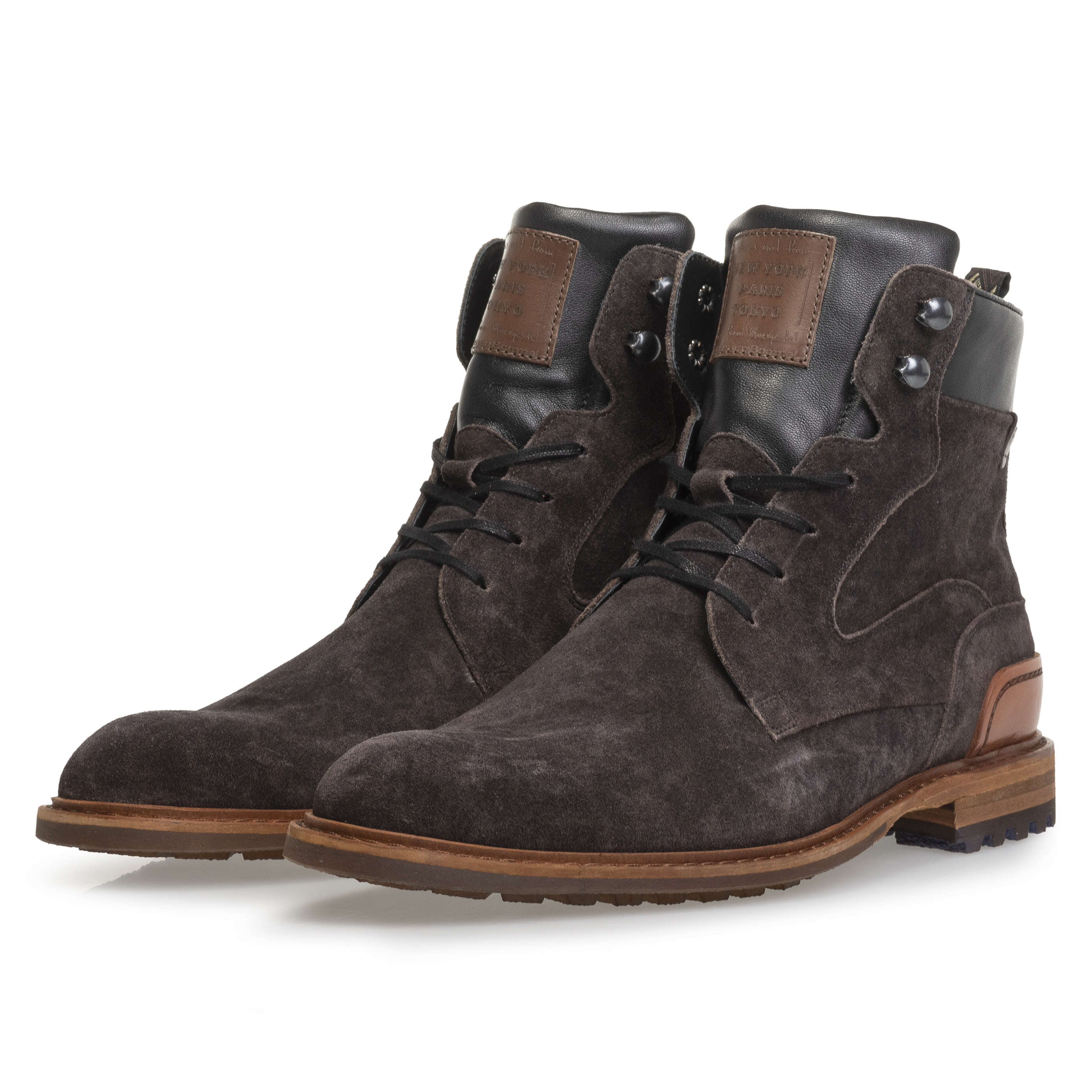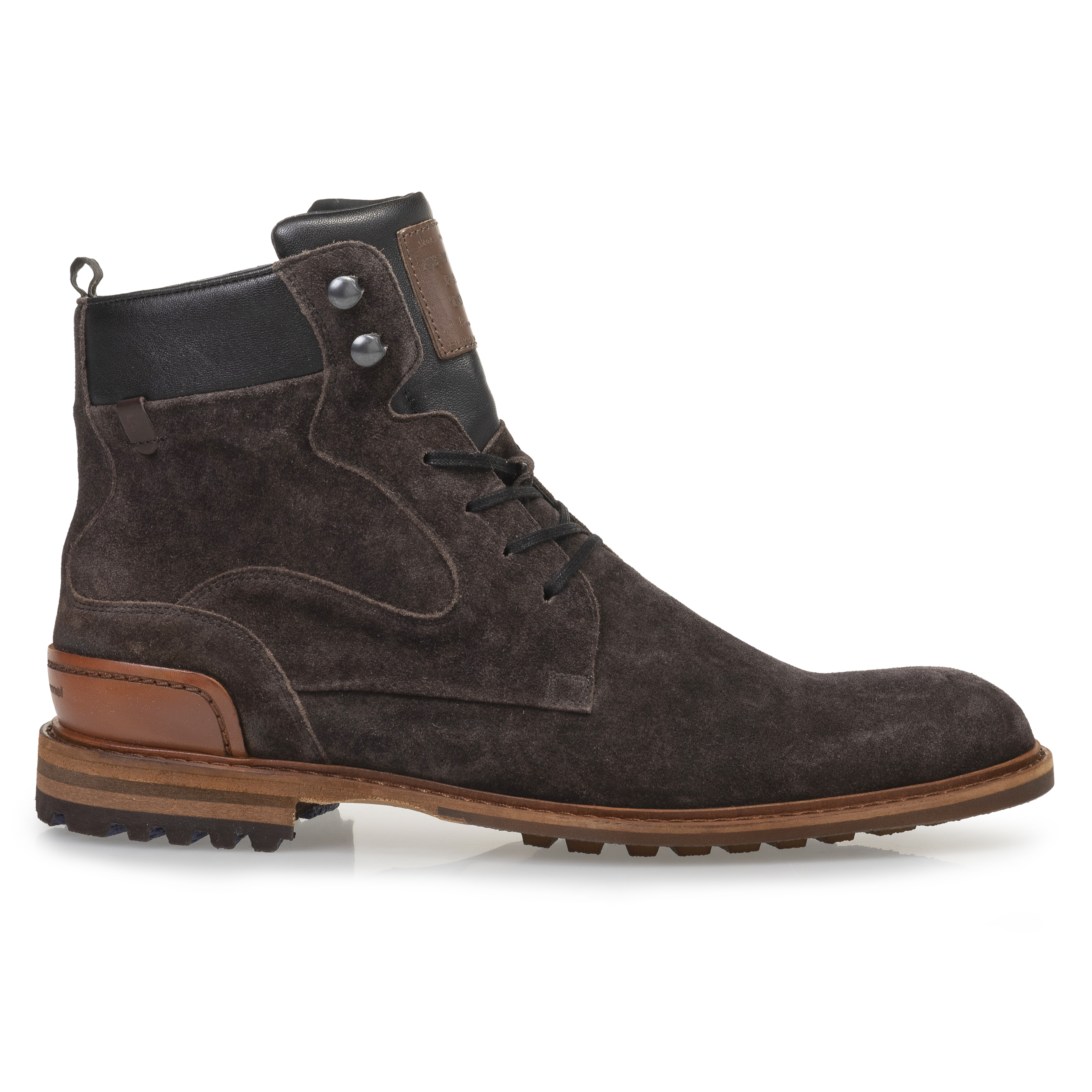 Ontdek nu onze robuuste veterboot vervaardigd uit een prachtig taupekleurig suède. Ervaar het ultieme draagcomfort dankzij het zachte foam dat de enkel omhult, terwijl de duurzame rubberen loopzool elke stap dempt. Let vooral op het subtiele detail: de textiele strap die de hiel omarmt en de kenmerkende tag die trots prijkt aan de zijkant, beide bijdragend aan de onmiskenbare Floris afwerking. Deze buitengewone creatie staat liefkozend bekend als de 'Crepi', vanwege de opvallende gelijkenis met de geliefde crepe zool. Voeg een vleugje avontuur toe aan elke stap met deze unieke en stijlvolle metgezel.