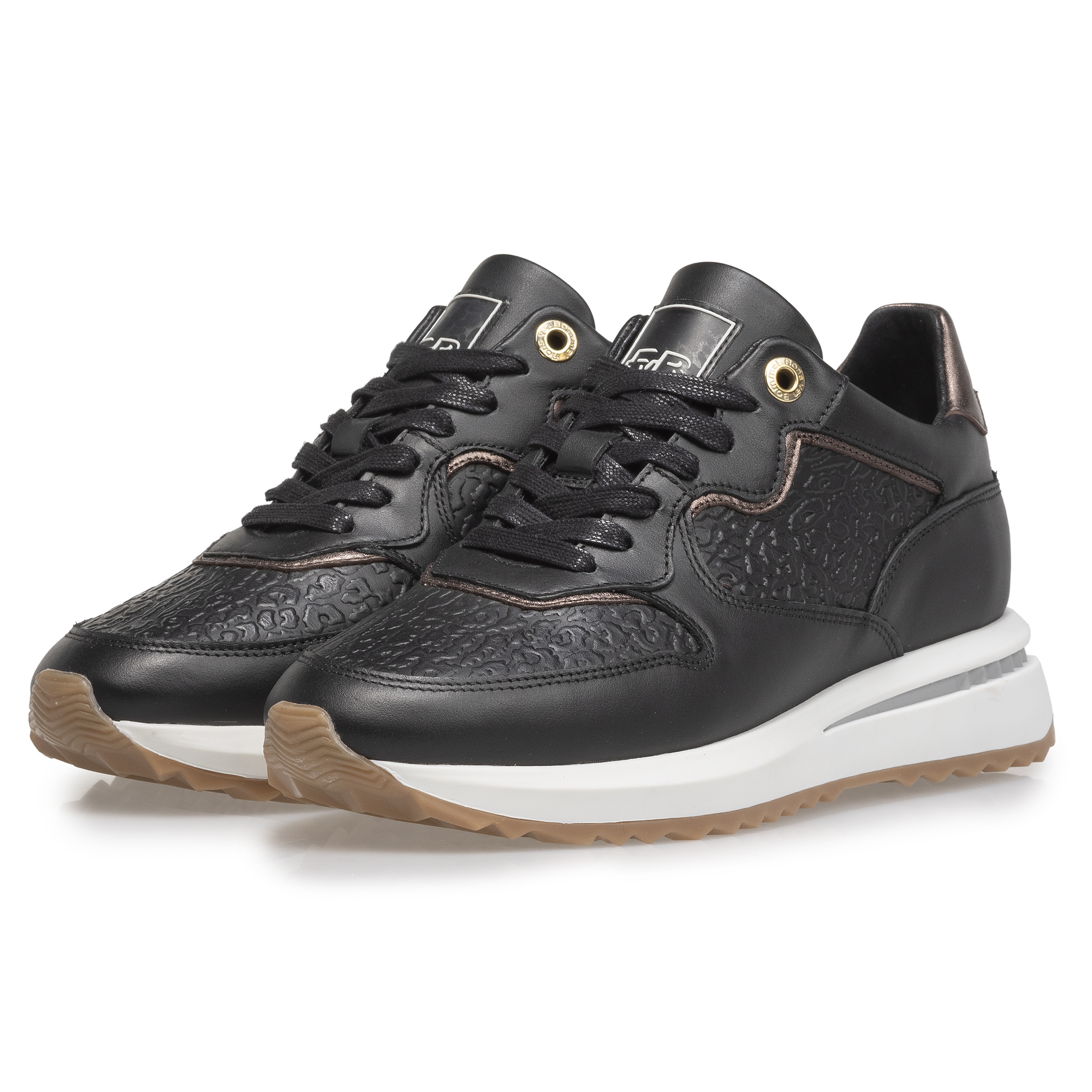 Ontdek de stijlvolle Sumi sneaker - sportief, comfortabel en modieus. Deze sneaker heeft een lichtgewicht zool met duurzaam TPU-loopvlak. Het bovenwerk is gemaakt van zwart kalfsleer en heeft een lizard reliëfdruk. Op de hiel is een rubberen insert met het Floris van Bommel logo. De tong heeft een suède label met 'Flo' en 'ris'. De binnenkant heeft een hoogwaardige leren voering en een uitneembaar voetbed. Stijl en comfort komen samen in deze veelzijdige sneaker.