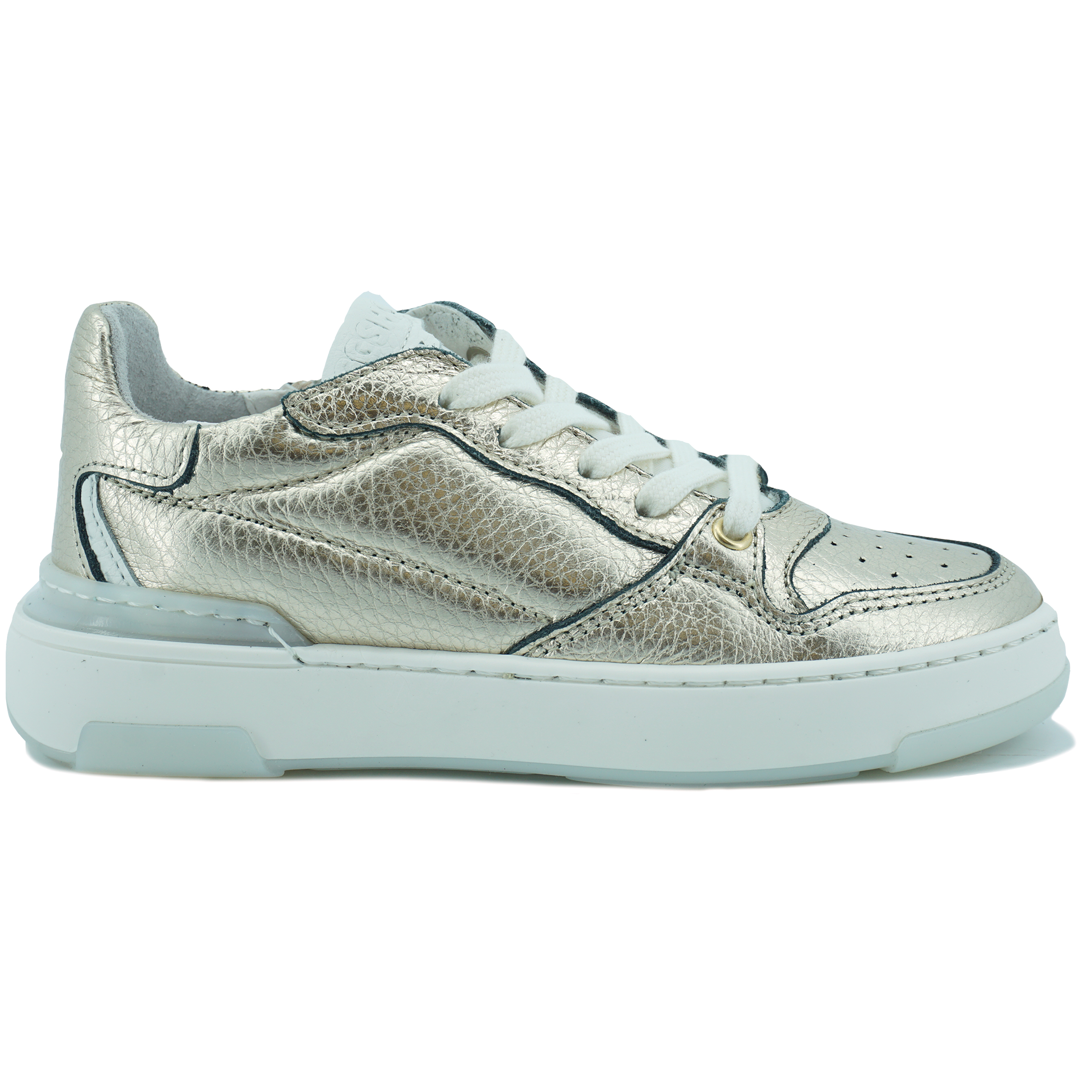 Leuke Giga meisjes sneaker in de kleur goud. De schoenen zijn gemaakt van leer en hebben een leren voering. De binnenzool kan er eventueel uit voor eigen zooltjes.