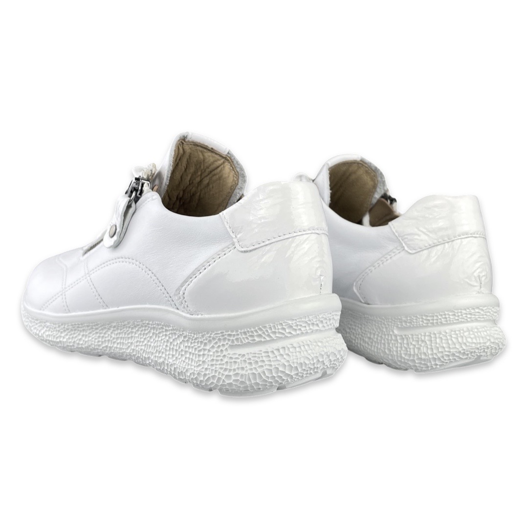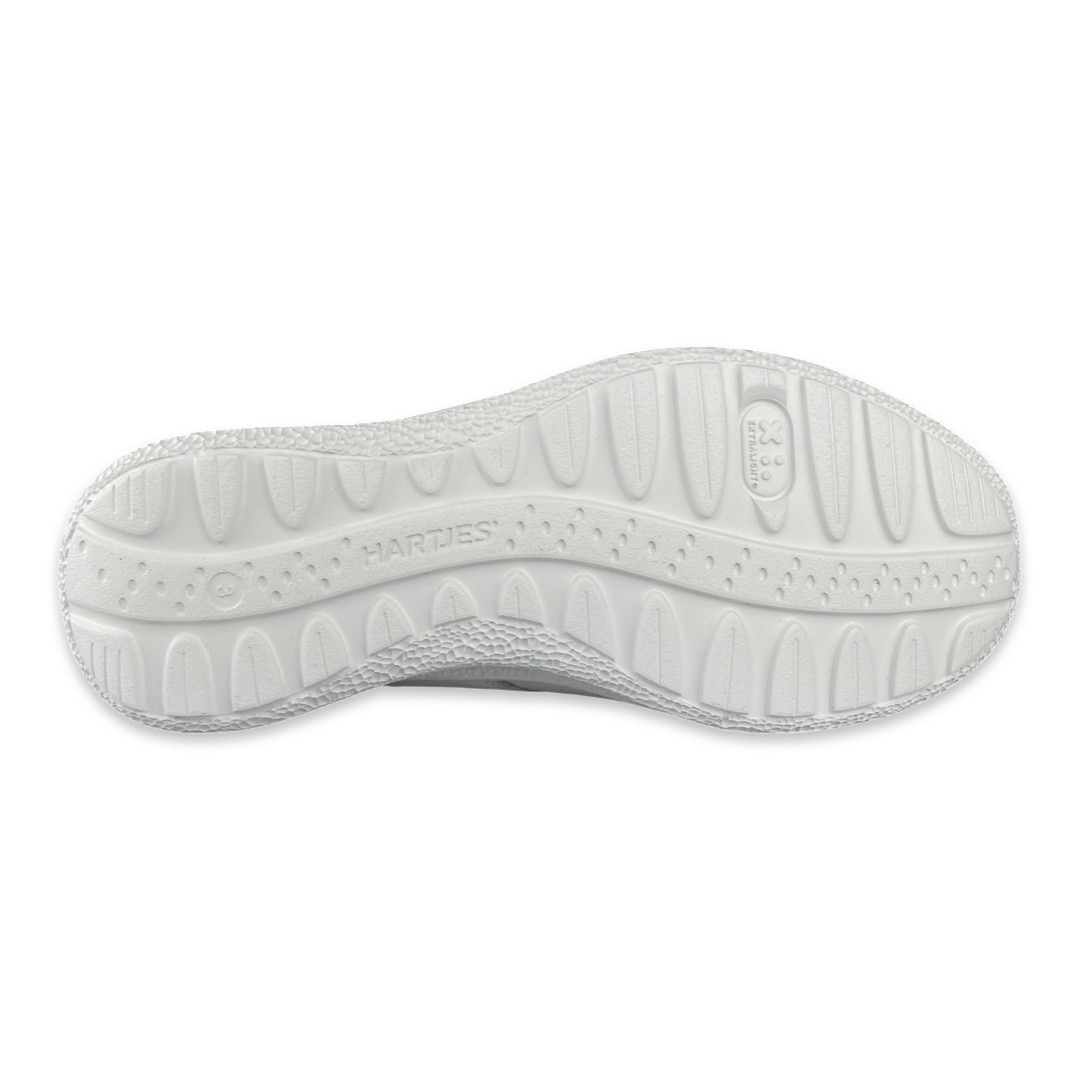 Hartjes 162-1602 Sneaker Rap White K. De veterschoen heeft een opvallende gebubbelde zool. De loopzool is gemaakt van extreem lichtgewicht, maar ook elastisch en flexibel. Deze zool zorgt voor een natuurlijke afwikkeling van de voet. Door de innovatieve XL Extralight technologie ontstaat een aanmerkelijk lichter gewicht van de zolen. De schoen is gemakkelijk aan- en uit te trekken door middel van de rits/vetersluiting. Het voetbed is uitneembaar.Pasvorm: Dit model is een K-leest, daardoor geschikt voor de bredere voet.