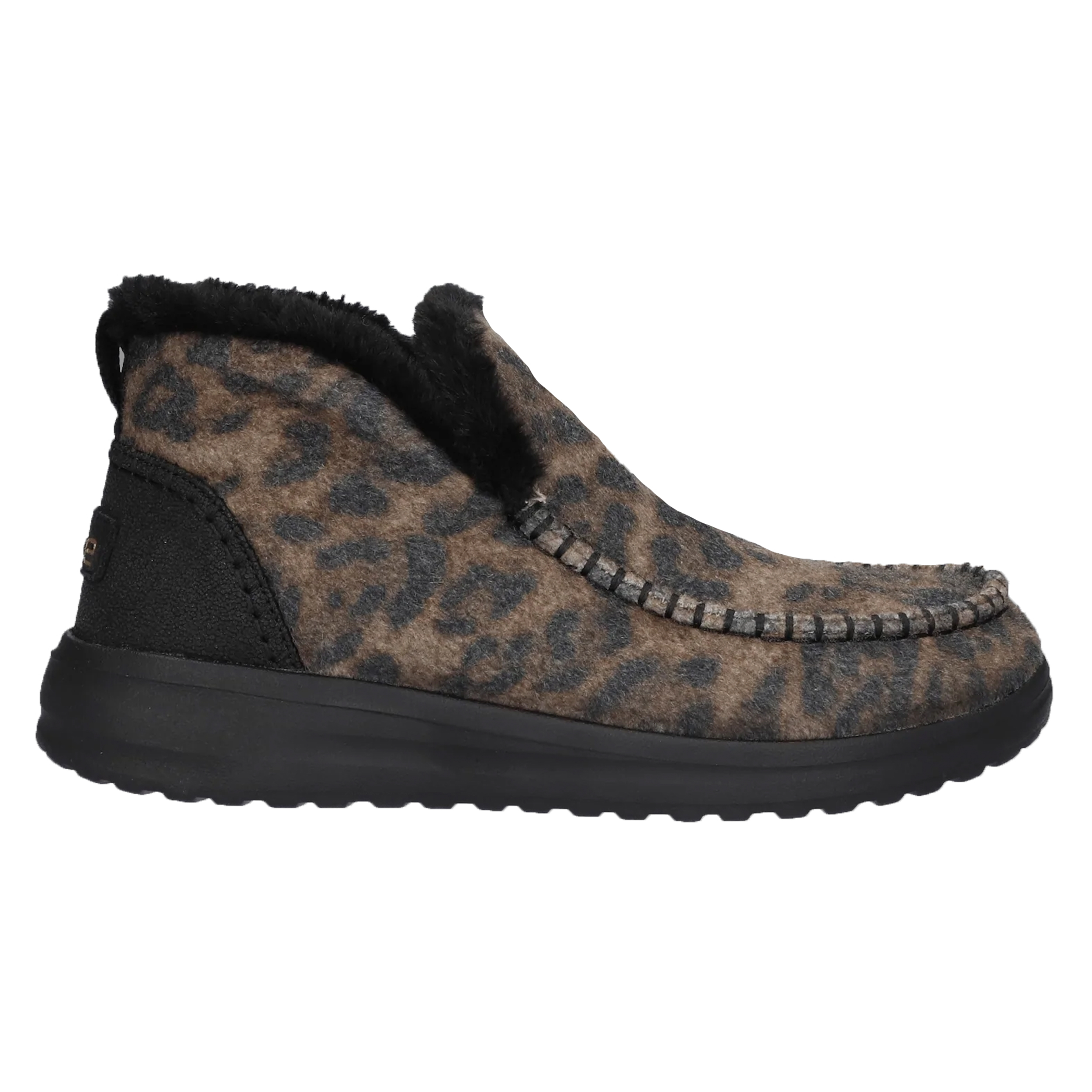 De Denny is een ongekend comfortabele instapper voor de wintermaanden. De instappers in booty stijl met typische HEYDUDE designkenmerken voelen aan als een pantoffel, maar kunnen prima buiten worden gedragen. De upper is vervaardigd van een wolmix met stijlvolle luipaard print. Binnenin zijn ze gevoerd met een knuffelzachte imitatievacht voering voor heerlijke warme voeten. Het met leer beklede voetbed van traag schuim is antibacterieel en uitneembaar. HEYDUDEs ingenieuze GripLIGHT zool zorgt voor grip en loopcomfort.