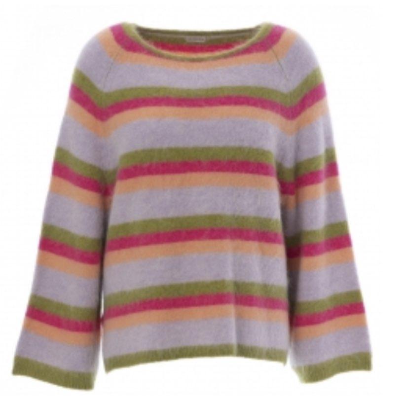 JcSophie Ariana Sweater Lollypop Stripes. Ontdek de betoverende JcSophie Ariana Sweater in Lollypop Stripes. Deze oversized pullover is doordrenkt met vrolijkheid, met een prachtig ontwerp in levendige kleuren. Vervaardigd uit een luxueuze, aaibare mix van alpacawol, acryl, nylon en spandex, biedt dit model een ongeëvenaarde zachtheid en comfort.