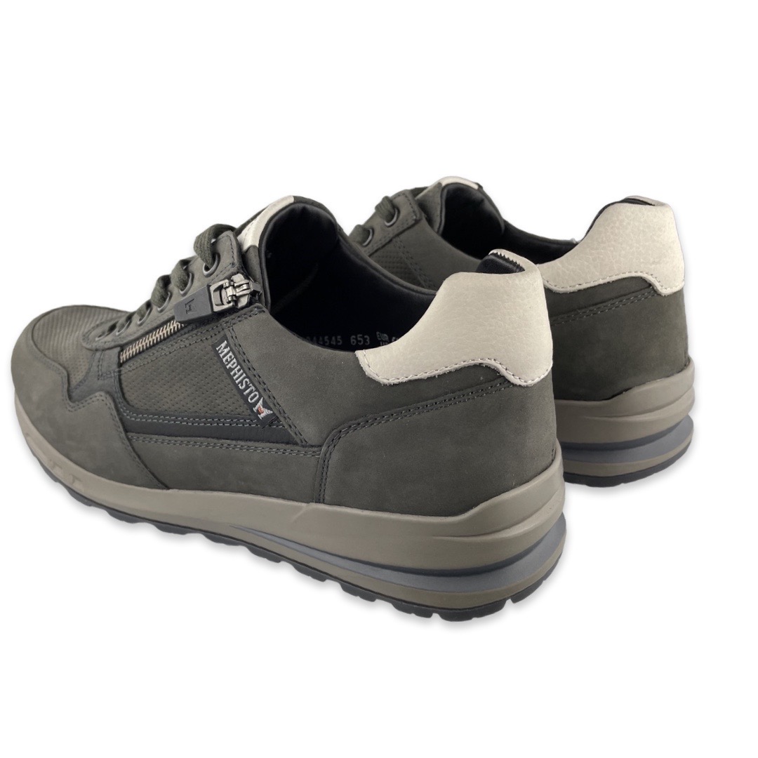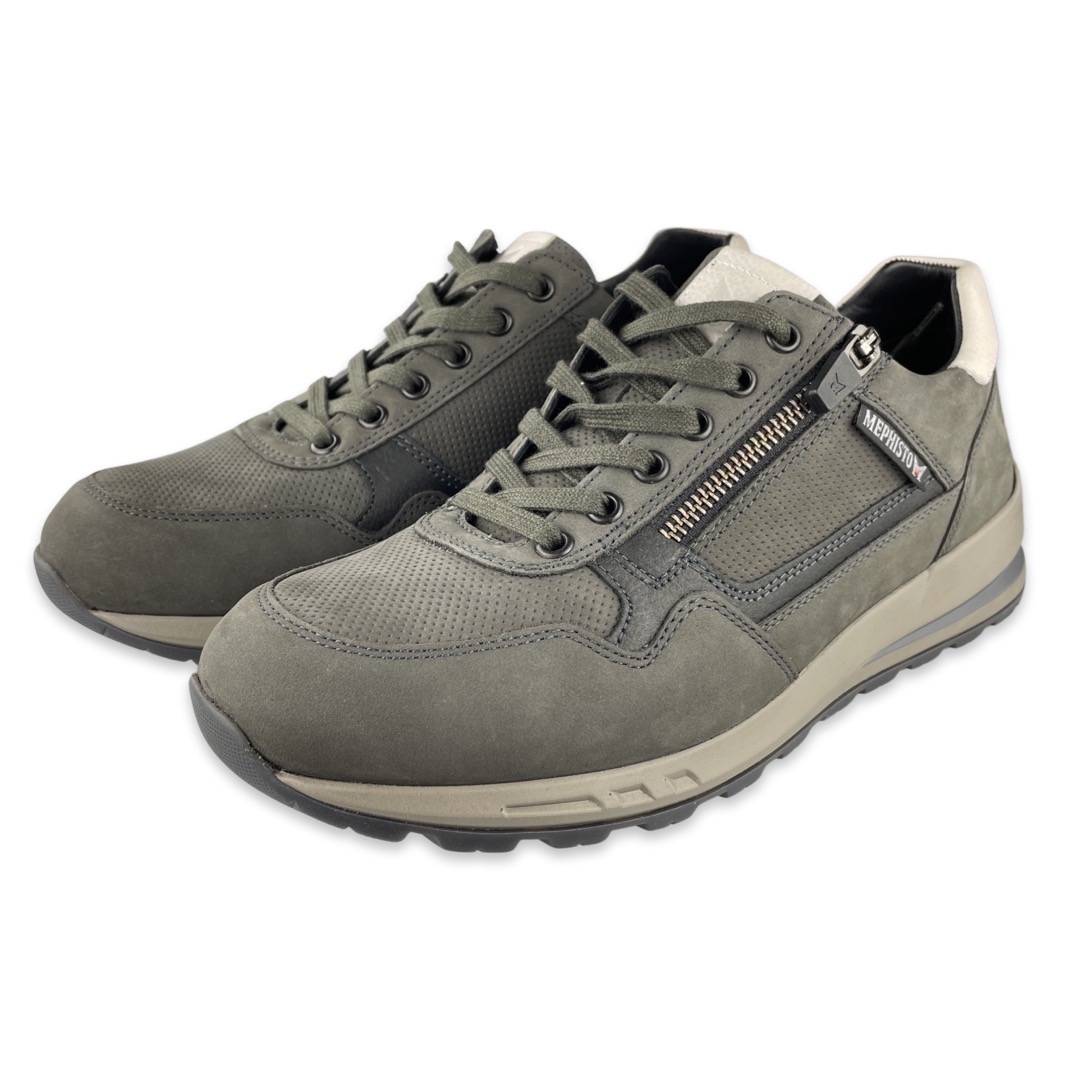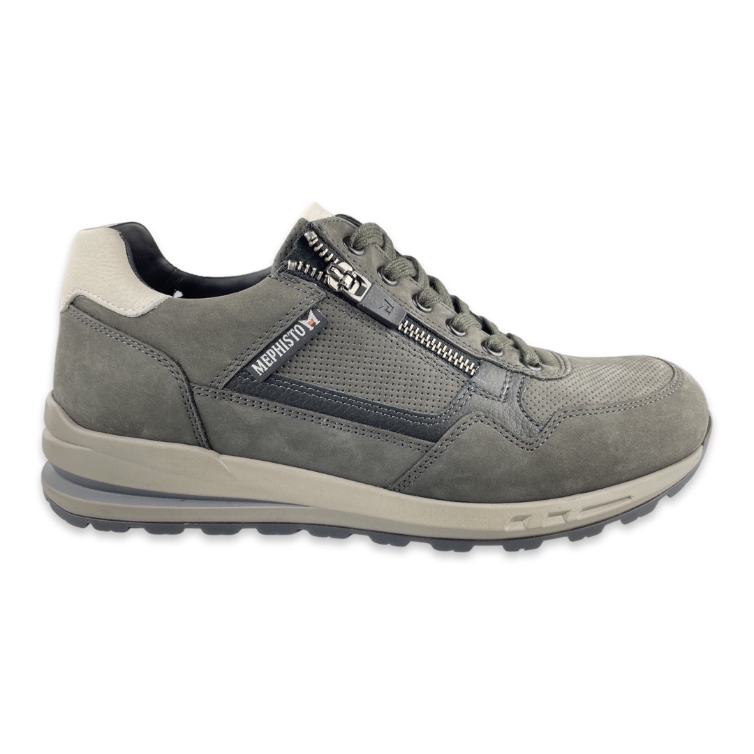 Mephisto 4284 Sneaker Bradley GraphiteMephisto begon ooit in 1965 in het Franse Sarrebourg. Inmiddels is het merk uitgegroeid tot een schoenenmerk dat over de hele wereld bekend en gerenommeerd is. De super comfortabele schoenen met een optimale pasvorm en de unieke Soft-Air technologie garandeert iedereen een aangenaam en vooral moeiteloos loopplezier.De schoen is gemaakt van leer en suede. De veterschoen heeft een uitneembaar voetbed voor eventueel eigen steunzolen. Er zit een rits langs de veters zodat de schoen makkelijk aan en uit te doen is.