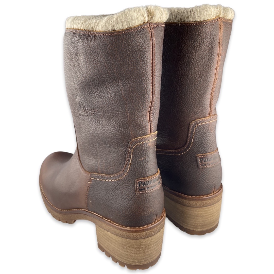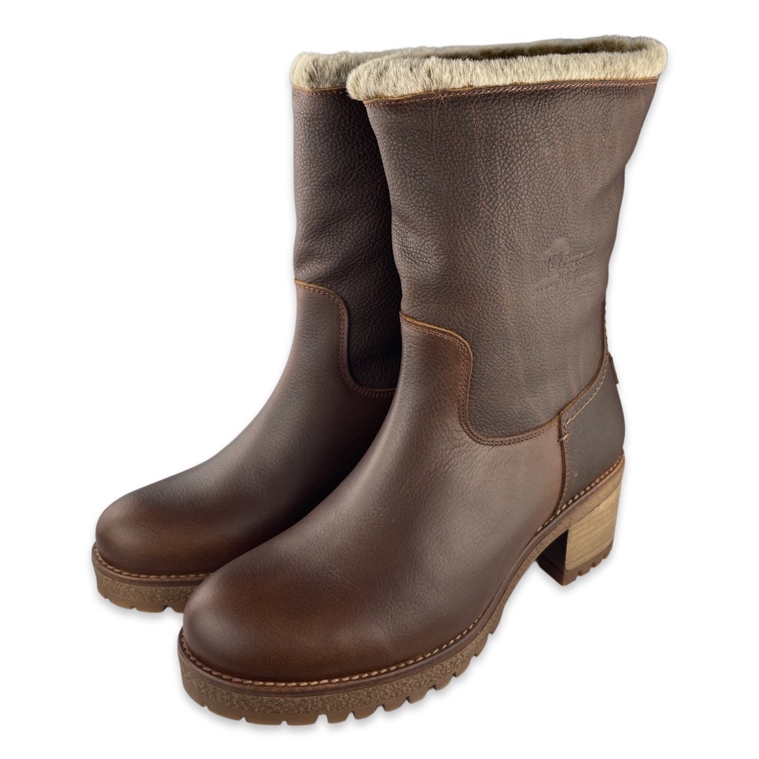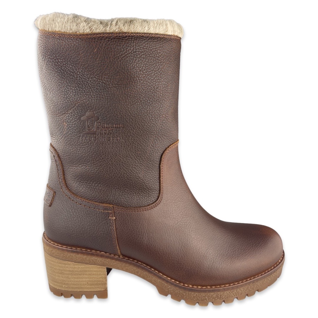Panama Jack B8 Enkellaars Piola Bark. Panama Jack is een Spaans familiebedrijf dat al meer dan 30 jaar bestaat. Sinds de oprichting streeft Panama Jack naar een hoge kwaliteit schoenen en service, maar ook duurzaamheid. Alle producten worden handgemaakt in Spanje en er worden alleen de beste materialen gebruikt en zo kan de beste kwaliteit gegarandeerd worden. Zo worden alle laarzen en schoenen van goede kwaliteit leer gemaakt, krijgen ze een waterproof behandeling en zijn ze voorzien van een schokabsorberende en uitneembare binnenzool. De buitenzool wordt zo gemaakt dat deze flexibel, duurzaam en anti-slip is; alle eigenschappen die een paar stevige en comfortabele outdoor boots dient te hebben.Deze bruine laarzen van Panama Jack zijn gemaakt van leer. De voering en voetbed zijn van schapenwol, waardoor je voeten heerlijk warm blijven. Er zit een rubberen zool onder en een hak van 6 cm. Het voetbed is niet uitneembaar.Pasvorm: valt normaal