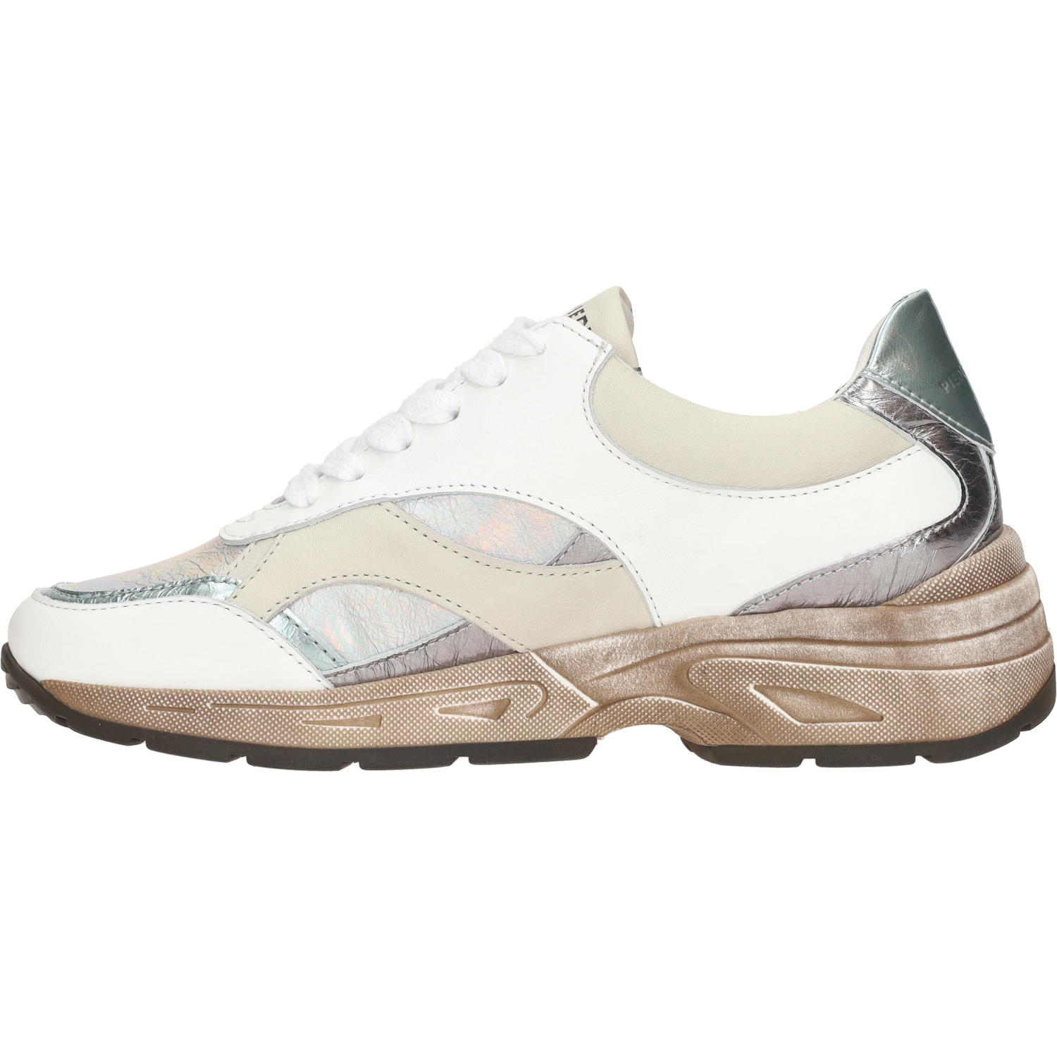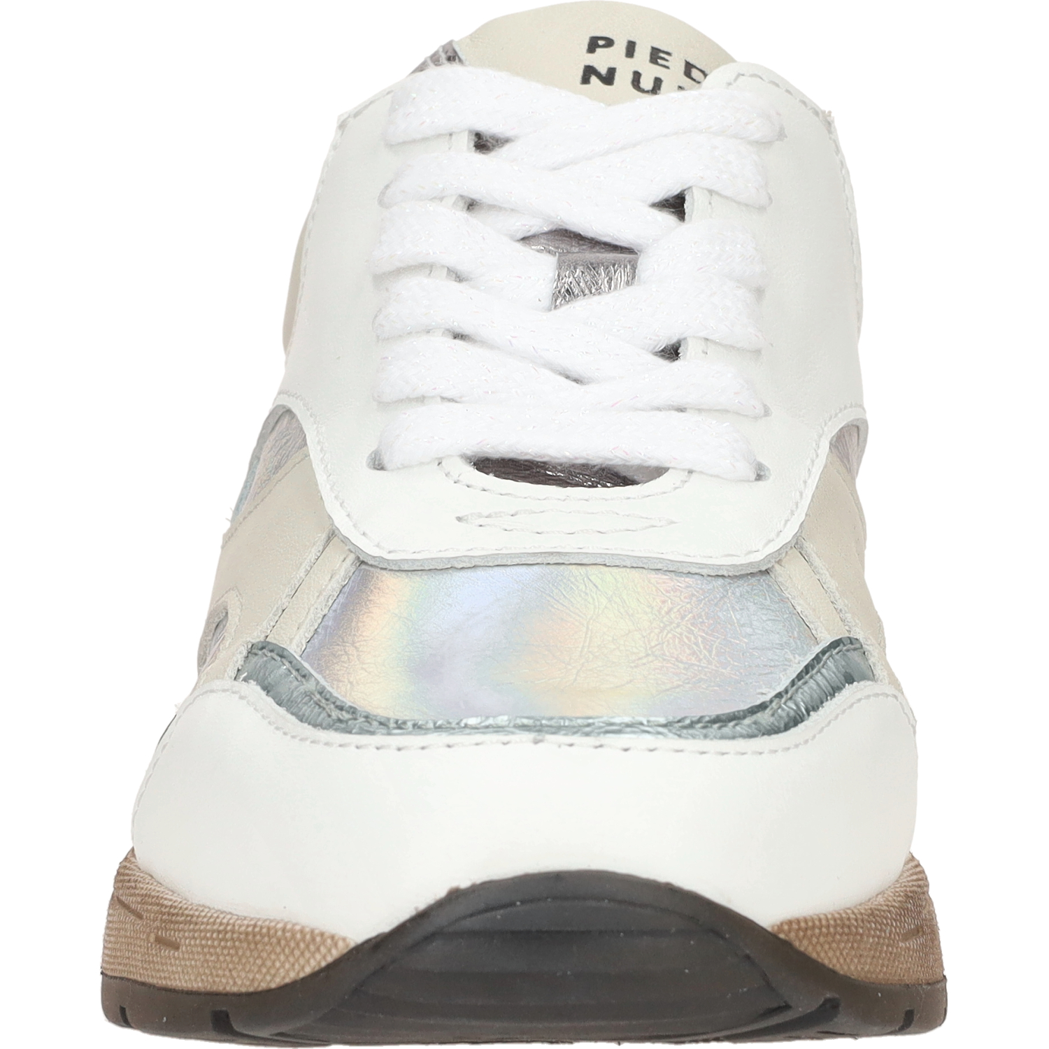 Ontdek de Piedi Nudi Zerba sneakers - lichtgewicht en opvallend met hun unieke ontwerp en trendy kleuren, waaronder wit, beige en zilver metallic. De slanke vormgeving geeft een elegante uitstraling, waardoor ze moeiteloos te combineren zijn. Geniet van comfort en grip dankzij de rubberen zool. Laat je stijl stralen met deze eyecatchers!
