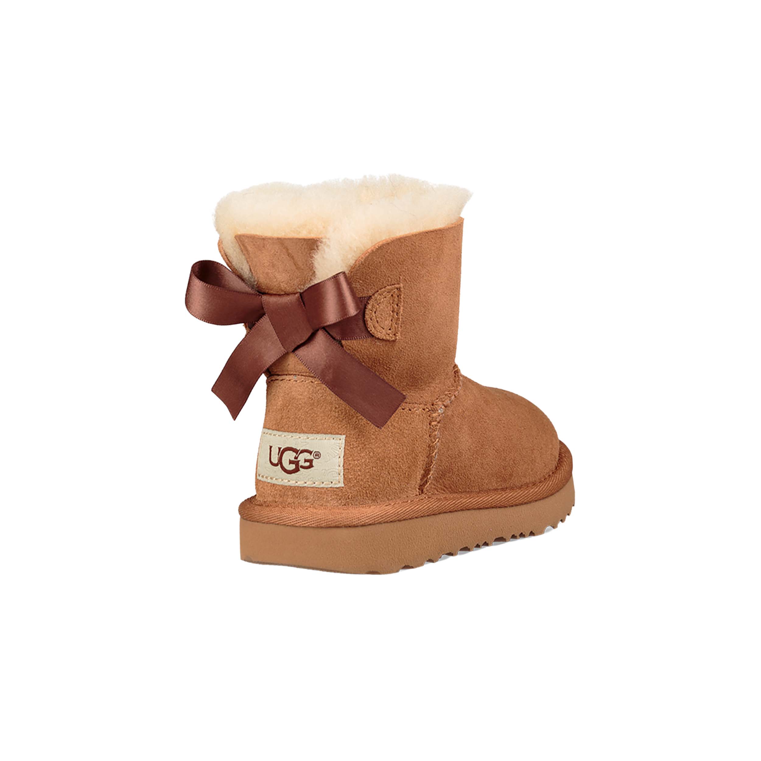 UGG 1017397T Enkellaars Toddler Mini Bailey Bow II Chestnut combineert schattigheid met serieuze kwaliteit – perfect voor kleine voetjes die comfort én stijl verdienen, elke dag opnieuw.