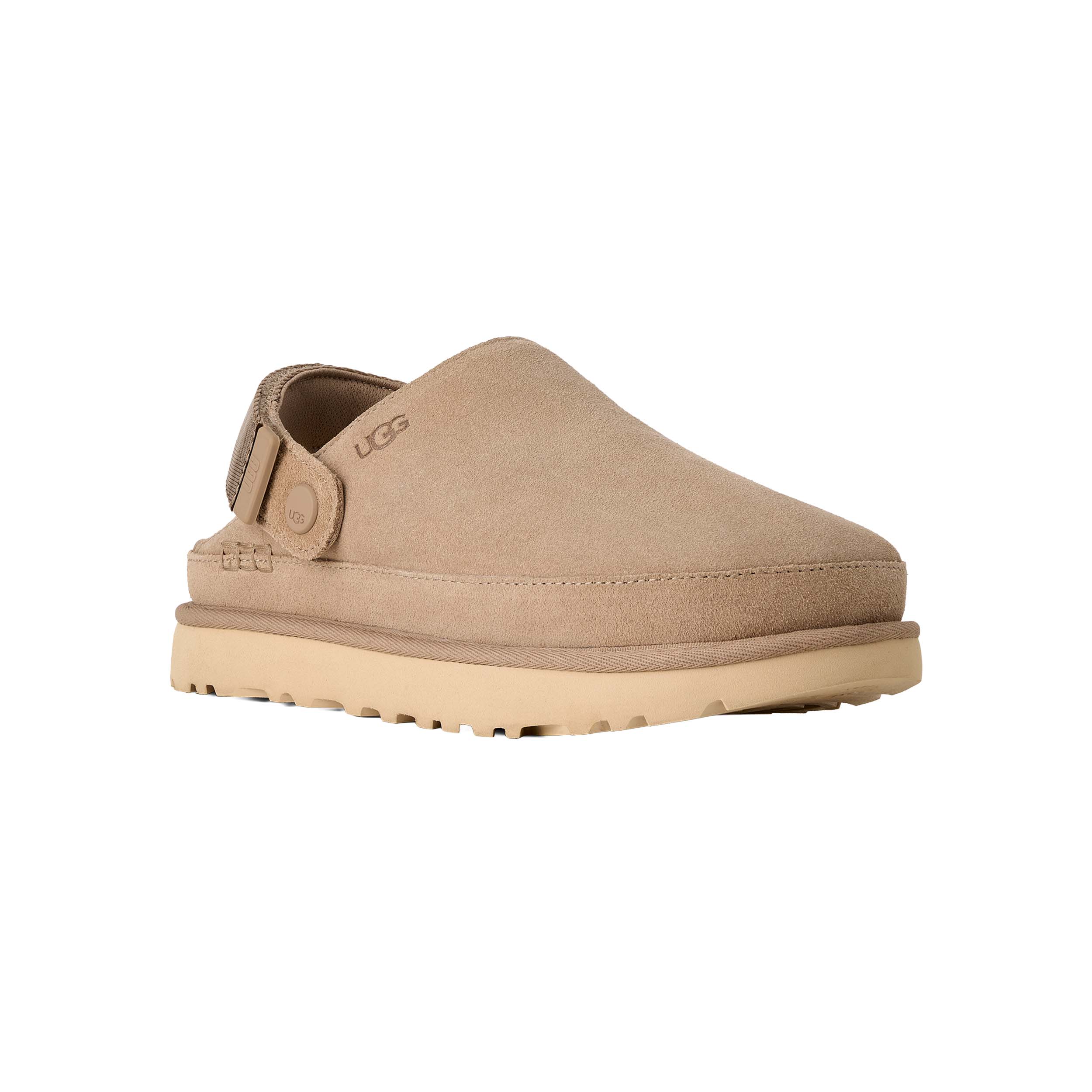 Deze stijlvolle muilen van UGG combineren elegantie en comfort voor de modebewuste vrouw. Gemaakt van hoogwaardig suède en uitgevoerd in een neutrale zandkleur, zijn deze muilen perfect voor elke gelegenheid. De Goldenstar muil heeft een verstelbare hielband die kan worden omgevormd tot een open rug, waardoor je twee draagopties hebt. Het anatomische voetbed zorgt voor optimale ondersteuning en comfort, terwijl de ademende voering je voeten droog en fris houdt. De flexibele zool, gemaakt van milieuvriendelijke materialen zoals suikerriet-EVA, biedt uitstekende grip en duurzaamheid, waardoor je moeiteloos de hele dag kunt lopen.
